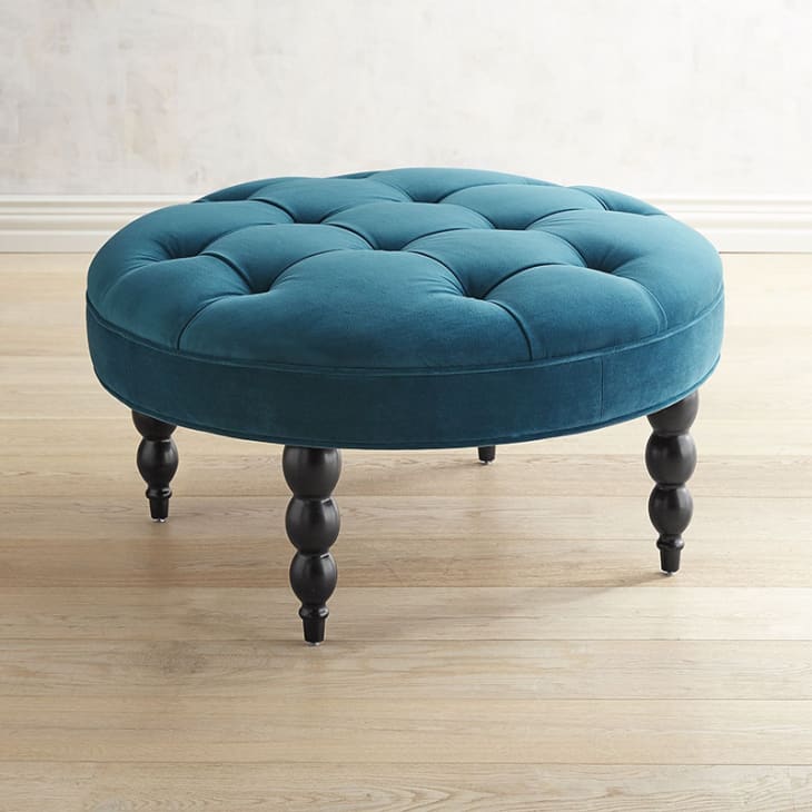 The button tufted ottoman, round circle tufted coffee table, cocktail ottoman is perfect for any room or space. Baxton studio kaylee teal blue storage ottoman bench 160 9936 hd. Ideal as a footstool or coffee table, the ottoman is built with a solid oak frame. Low profile for a clean modern look; Parisian contemporary button tufted fabric pillow top ottoman coffee table.